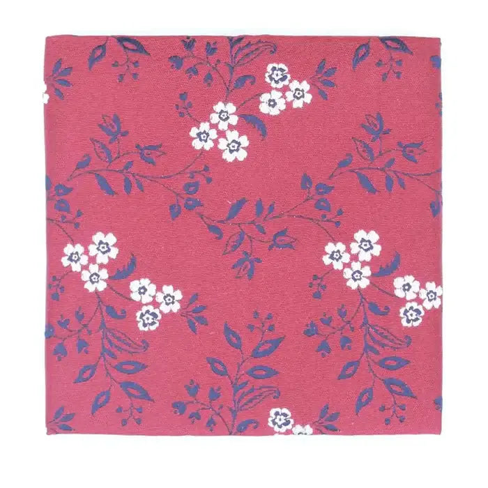 L A Smith Leafy Floral Woven Wedding Poly Hanks - Navy On Red - Accessories