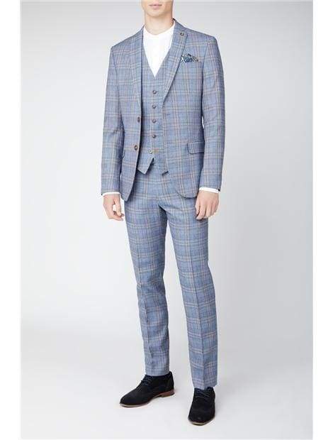 Command attention in this modern & stylish Antique Rogue Brando Light Blue Tweed Check Trousers. Featuring classic checkered design & slanted side pockets. Cut to a slim fit with a plain front, this pair offer one hip pocket & slant side pockets. Complete with a matching jacket for an edgy, daring look.
