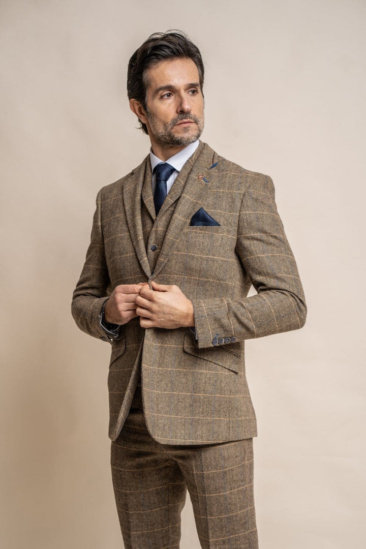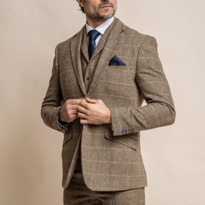 Cavani Albert Men’s Brown Sim Fit Tweed Style Jacket - 34 / Regular - Jackets