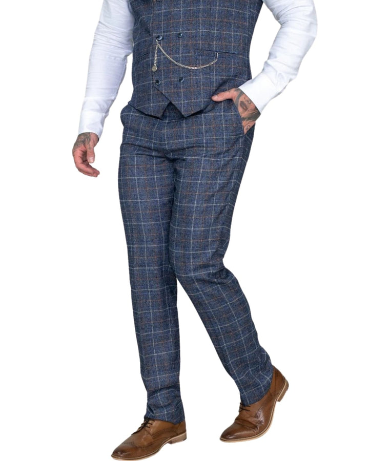 Cavani Men’s Tweed Trousers - Kaiser/Blue / 40R - Suit & Tailoring