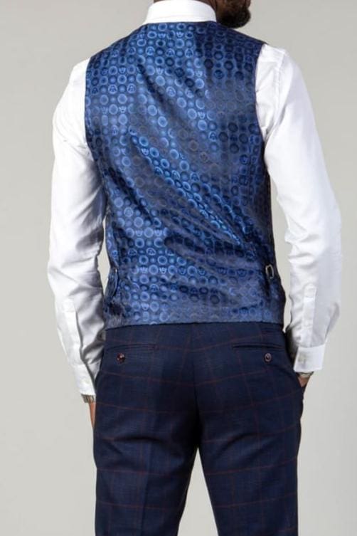 Marc Darcy Edinson Navy Check Single Breasted Waistcoat - Suit & Tailoring