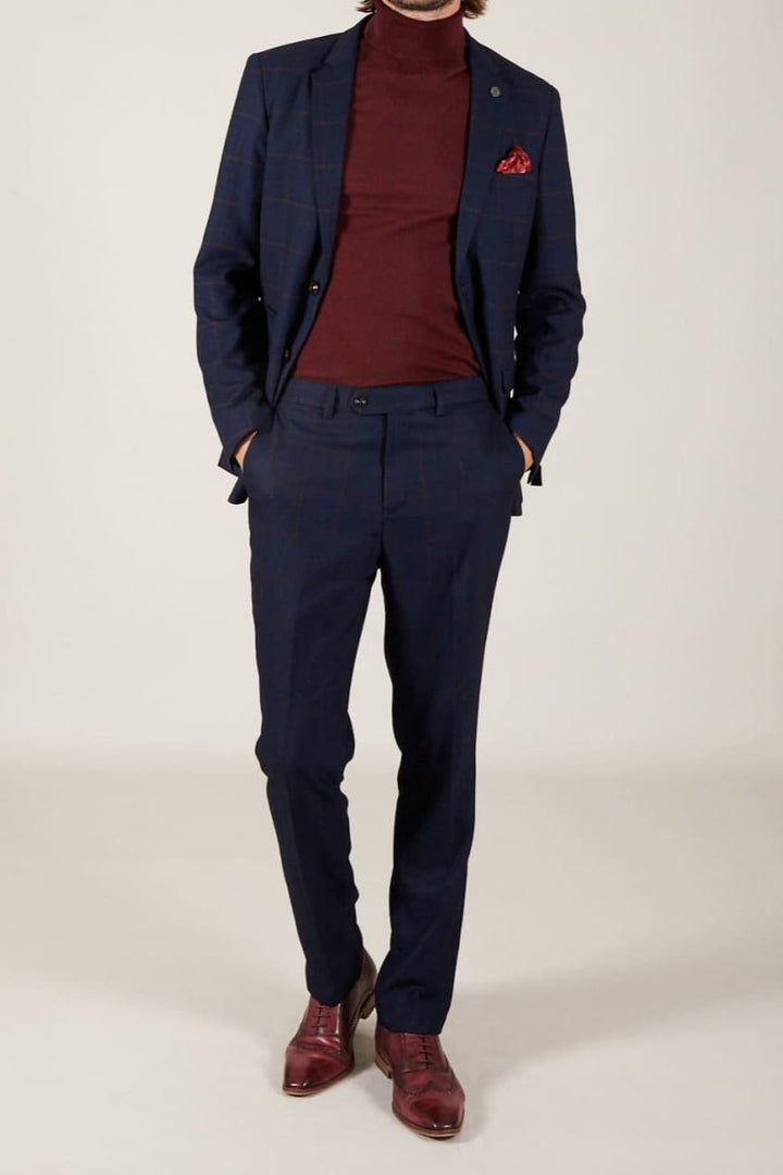 Marc Darcy Edinson Navy Check Trousers - Suit & Tailoring