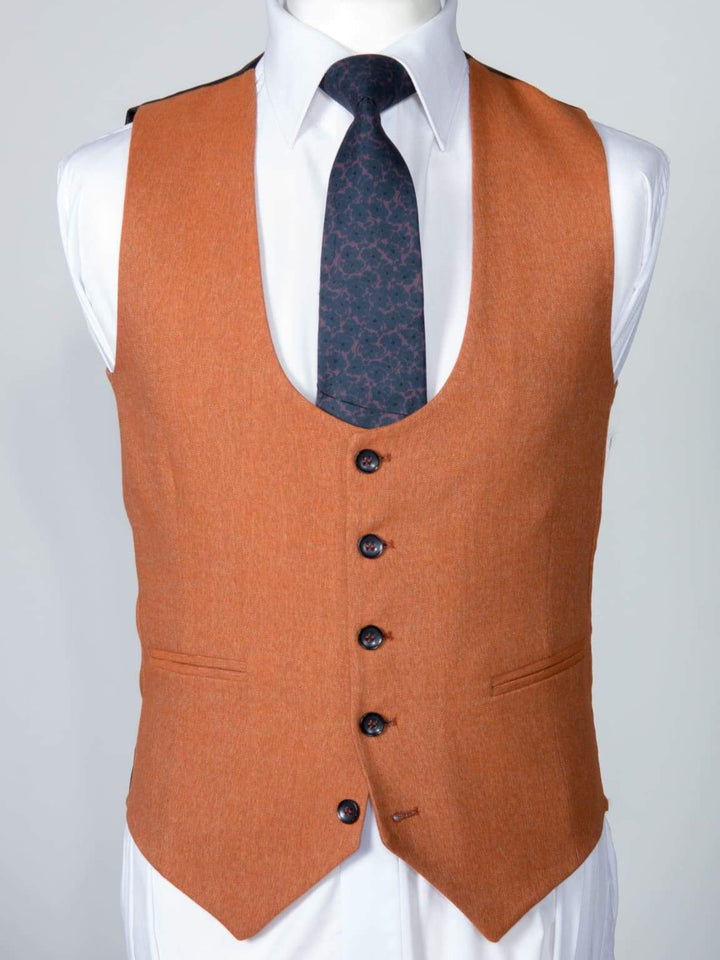 For the full 3-piece picture, wear it with the coordinated waistcoat and trousers. The orange tone will team perfectly with reds and blacks, so keep this in mind when choosing your tie and pocket square.