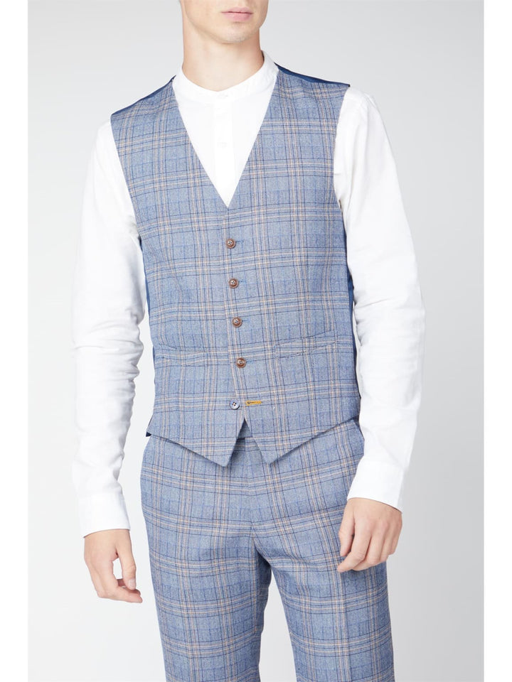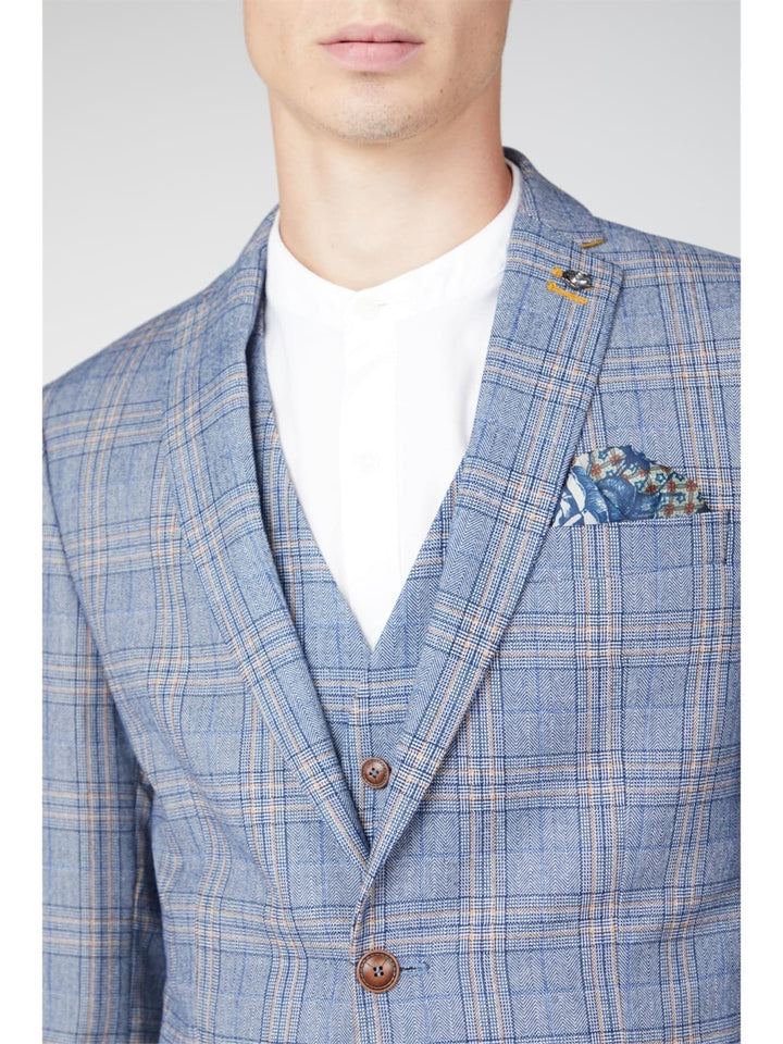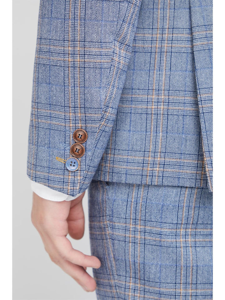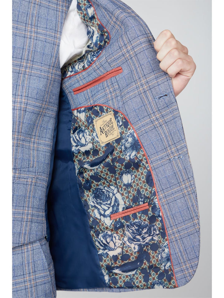 Antique Rogue Brando Light Blue Tweed Check 3 Piece Suit