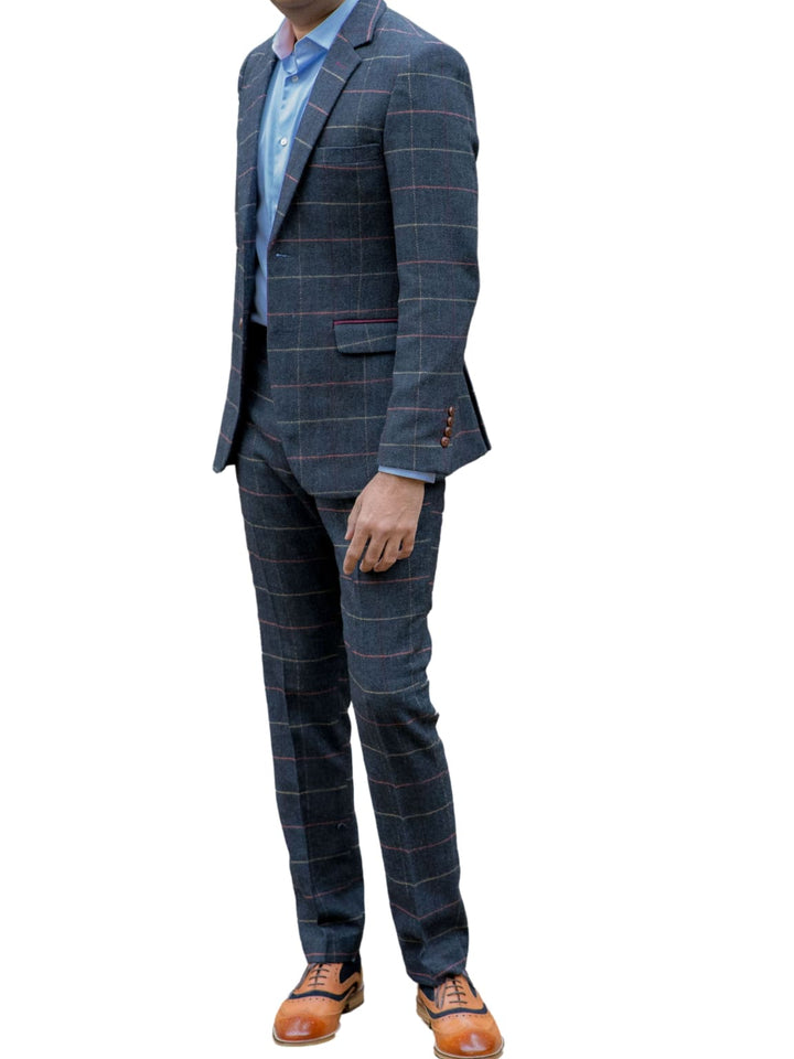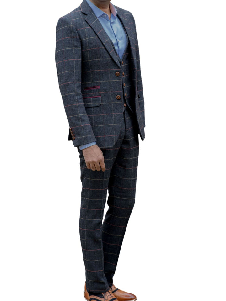 Barucci Leo Men’s Navy Slim Fit Tweed Waistcoat - Coats & Jackets Barucci Leo Men's Navy Slim Fit Tweed Trousers