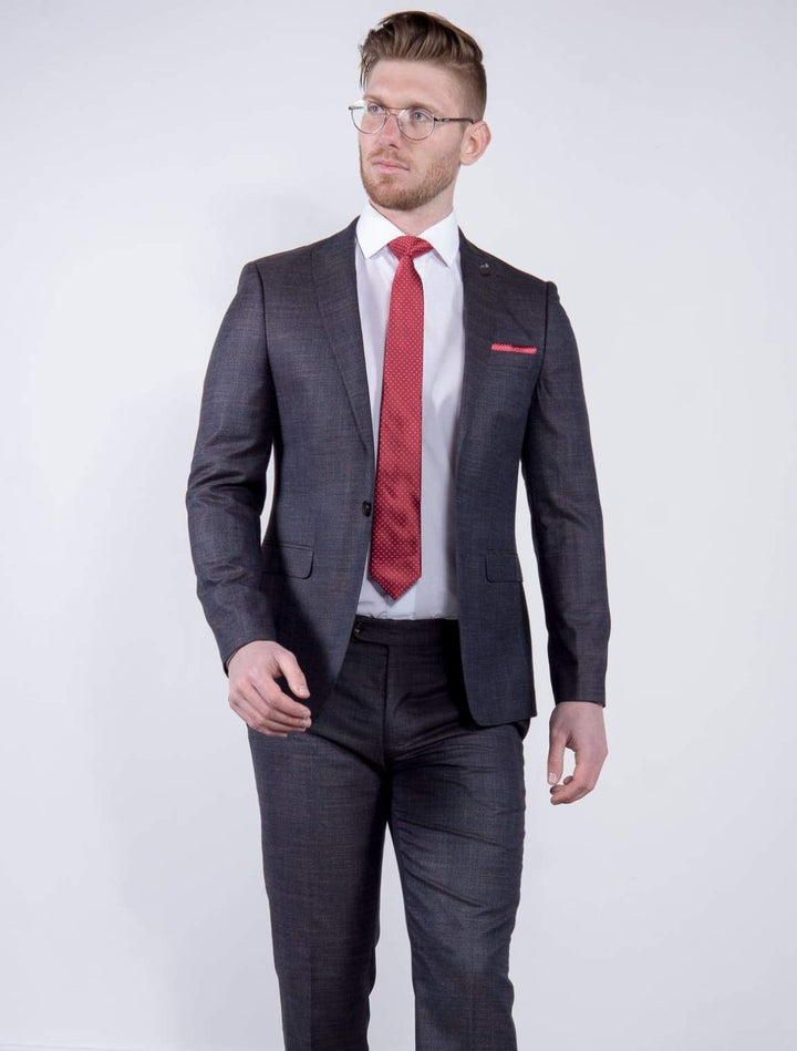 This sophisticated suit is a masterwork of elegance, boasting a luxurious grey brown shade, crisp peak lapels, and stylish silhouette. Its slim fit follows the contours of your figure, creating a sleek and defined profile. Elevated by a classic white shirt and pocket square, this suit is the perfect choice for any special event. And, thanks to the unfinished trousers, you can tailor them to your preferred length up to 34" inside leg.