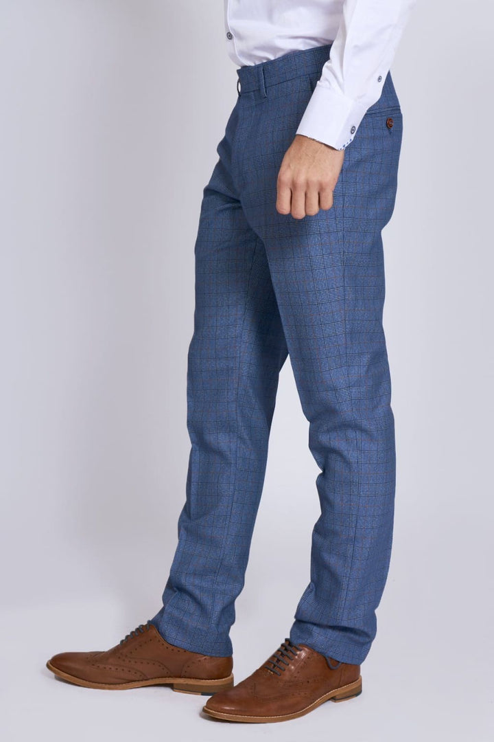 Marc Darcy George Light Blue Check Three Piece Suit - Suit & Tailoring
