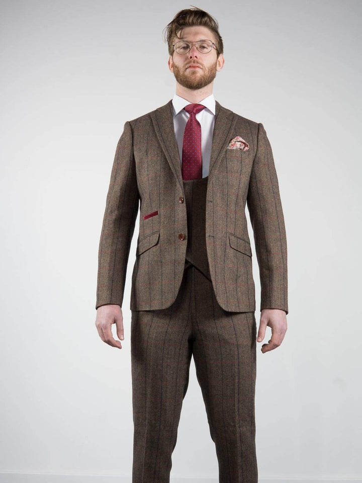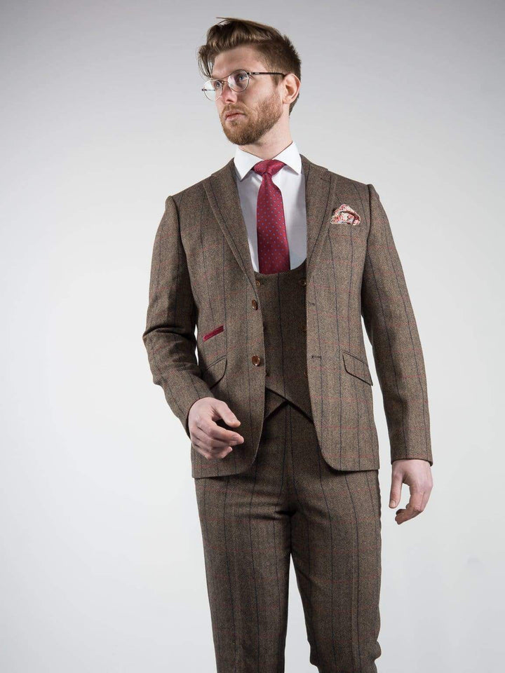 Mens Tweed Blazer Ronan Brown Herringbone Check Jacket by Marco Prince - Suit & Tailoring