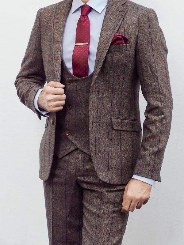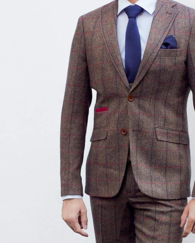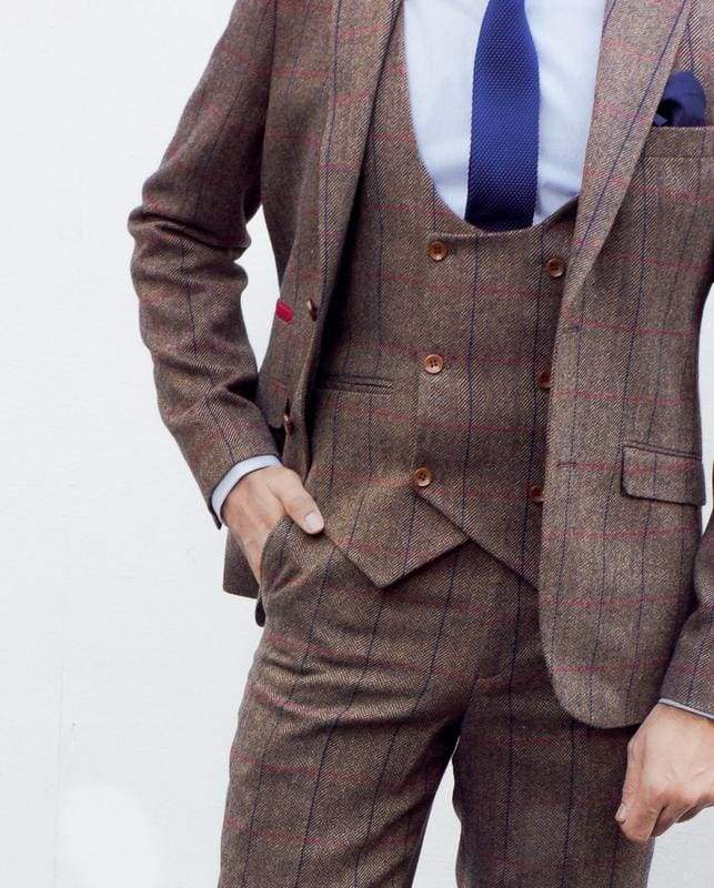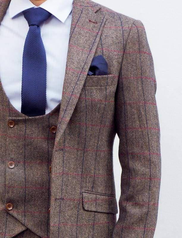 Marco Prince Ronan Men's Brown Tweed Blazer is an exquisite addition to our stunning collection of tweed blazers. Crafted from a luxurious wool blend fabric, this blazer has an impeccable, razor sharp cut, designed to make you look perfect for your big day. But why limit yourself to special events? It also enhances any dress-down Fridays and night-outs with friends. With a classic British silhouette and a slim fit, this tweed jacket is sure to be a showstopper. If you're between sizes, go up for a more relaxed look. To take it to the next level, add the matching waistcoat and trousers to create an iconic Peaky Blinders look. The combination is timeless and works with any colour palette.