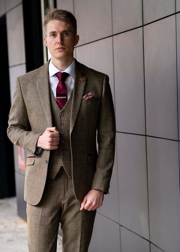 Marc Darcy TED Tan Heritage Tweed Check Two Piece Suit