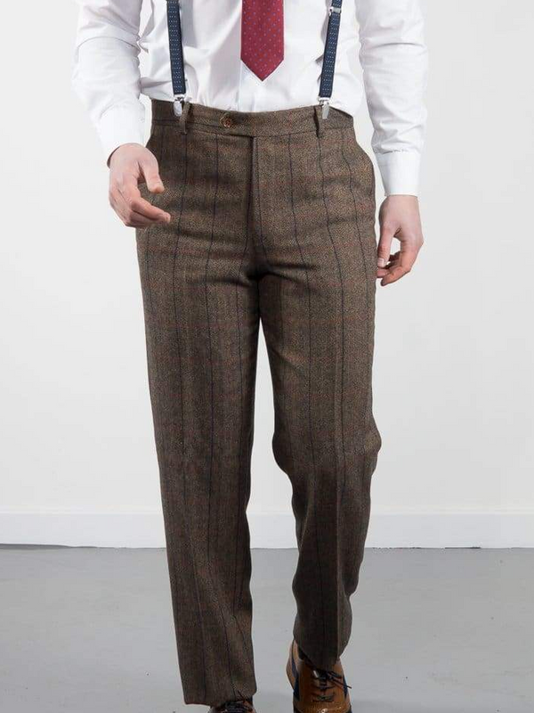 Cavani Connall Tweed Brown Men's Slim Fit Trousers