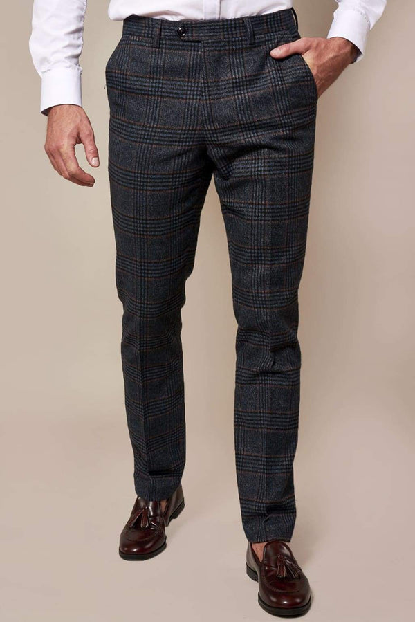 Men’s Tweed Trousers Marco Prince Keaton Navy Tweed Check - MENSWEARR.COM - 30R - MEN’S SUIT TROUSERS