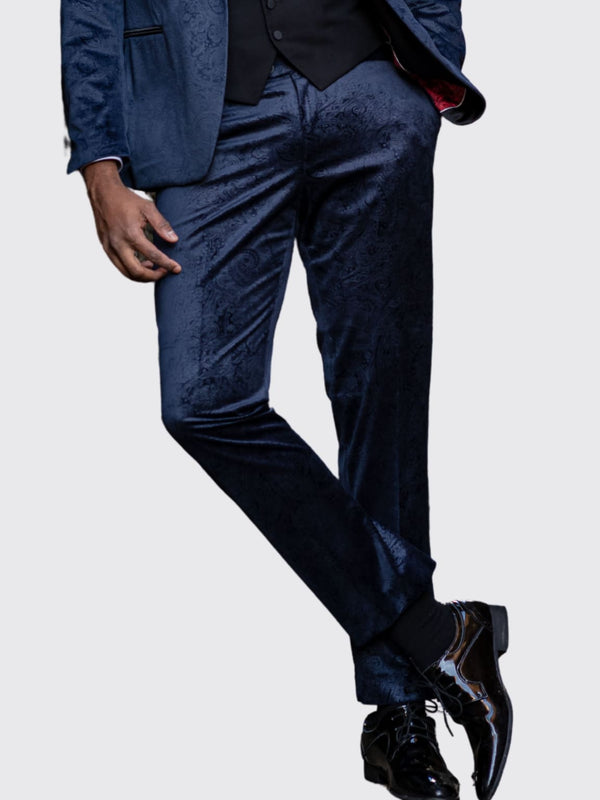 Simon Velvet Navy Blue Paisley Tuxedo Trousers