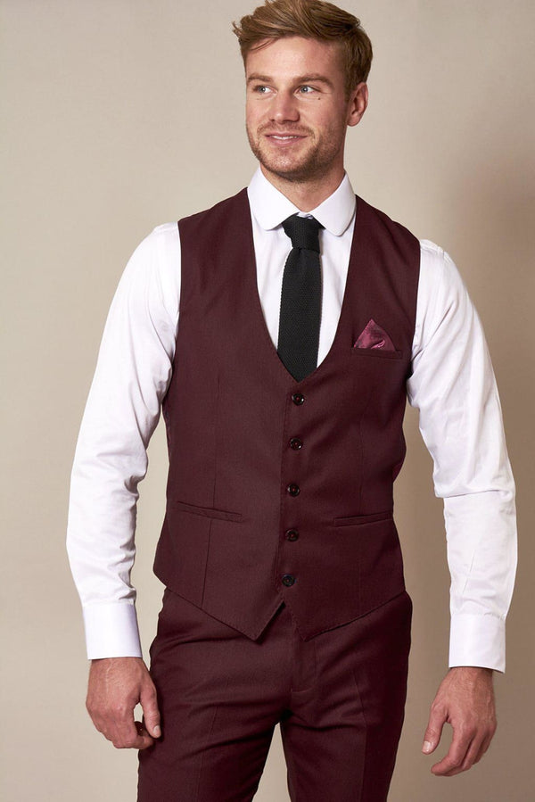 Marc Darcy Danny Wine Tailored Waistcoat - Suit & Tailoring
