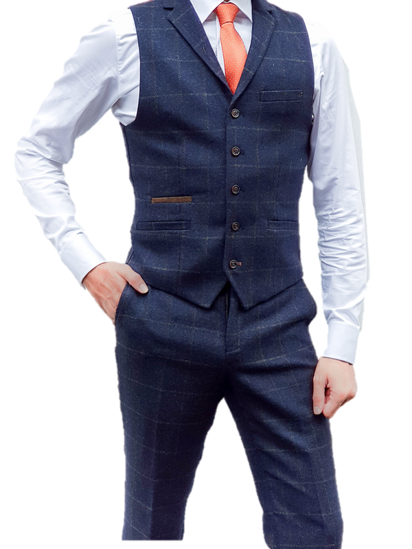 Marc Darcy Men's Blue Tweed Check Chigwell Waistcoat