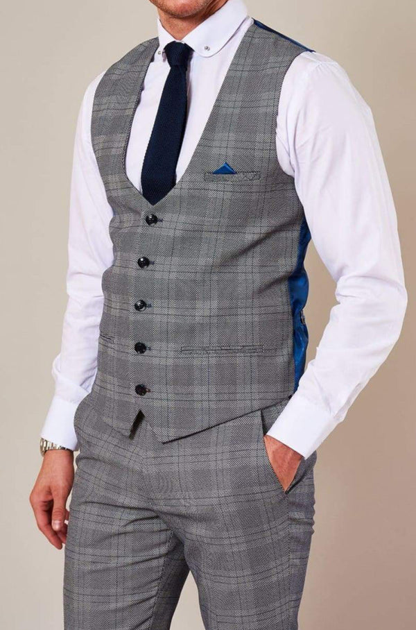 Marc Darcy Jerry Grey Check Single Breasted Waistcoat