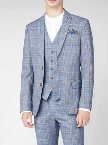 Antique Rogue Brando Light Blue Tweed Check 3 Piece Suit