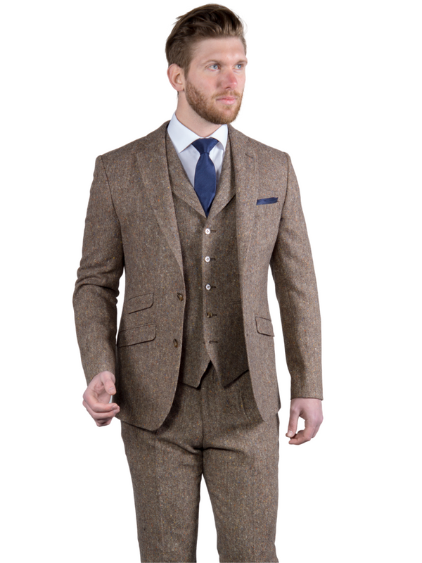 Brown Donegal Tweed Suit 3 Piece 100% Wool Suit Elton by Torre