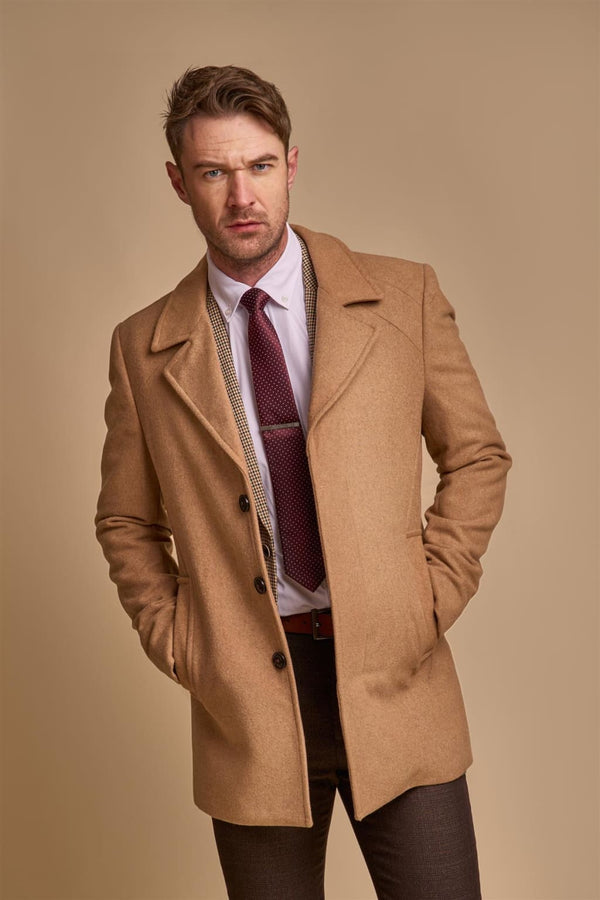 Cavani Men’s Kingston Tan Brown Overcoat - MENSWEARR.COM - COATS