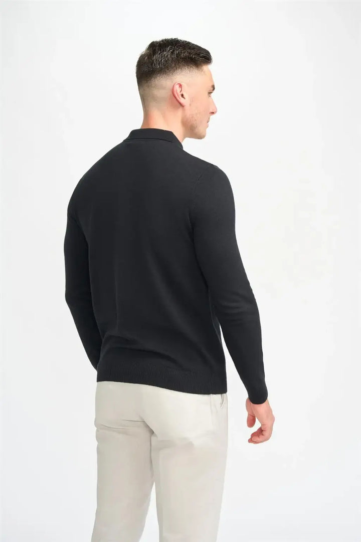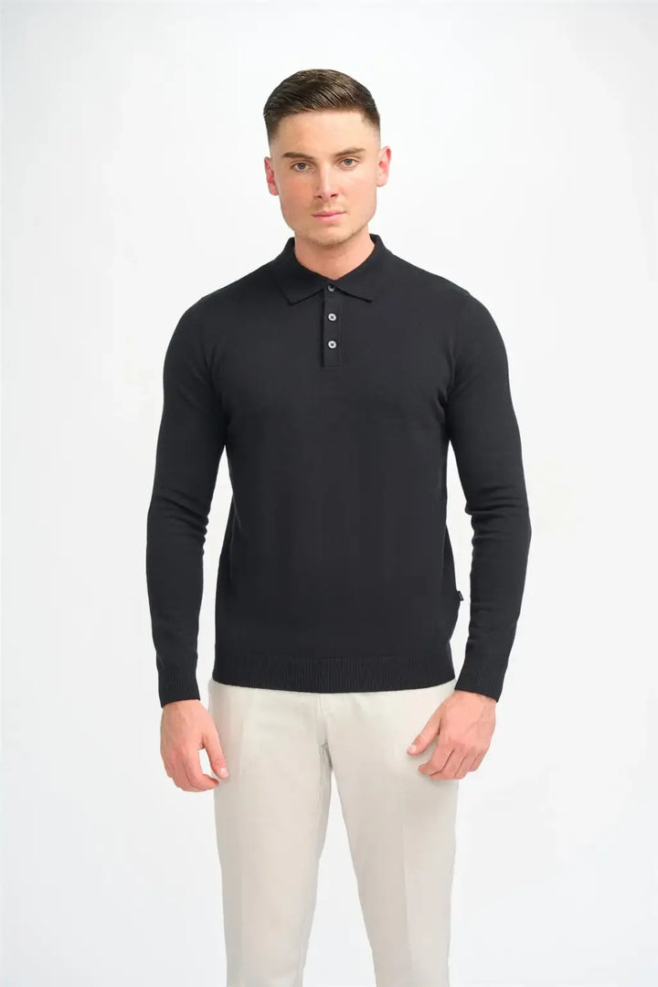 Cavani Men’s Boom Plain Long Sleeve Polo - Black / S - Knitwear