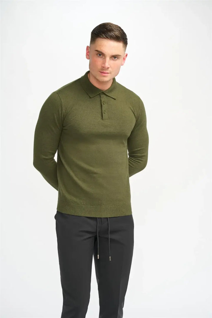 Cavani Men’s Boom Plain Long Sleeve Polo - Olive / S - Knitwear