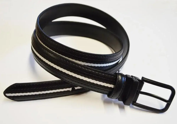 LA Smith Black Coloured Leather Striped Belt - Medium - Accessories