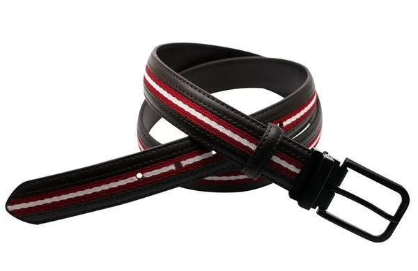 LA Smith Red Coloured Leather Striped Belt - Medium - Accessories
