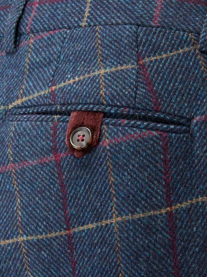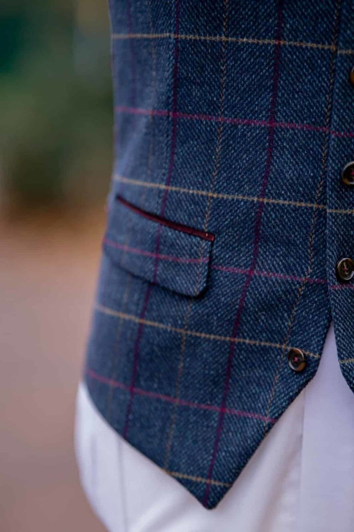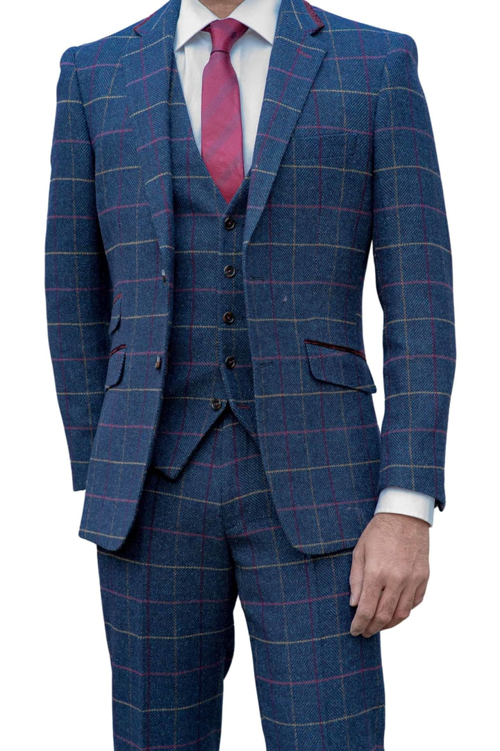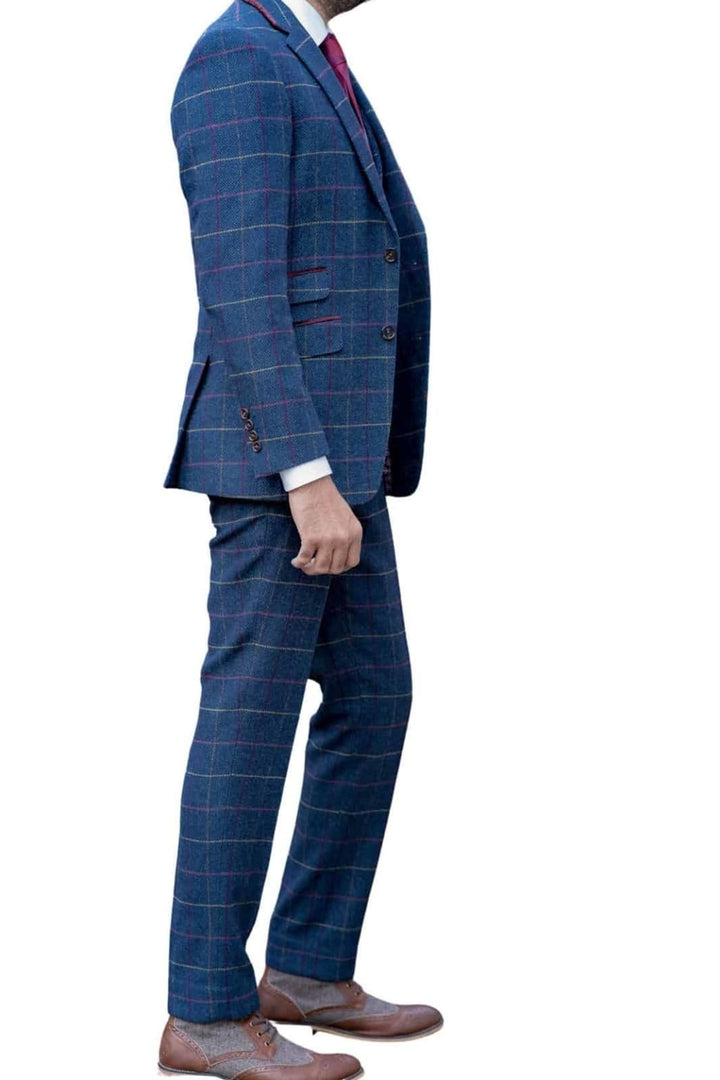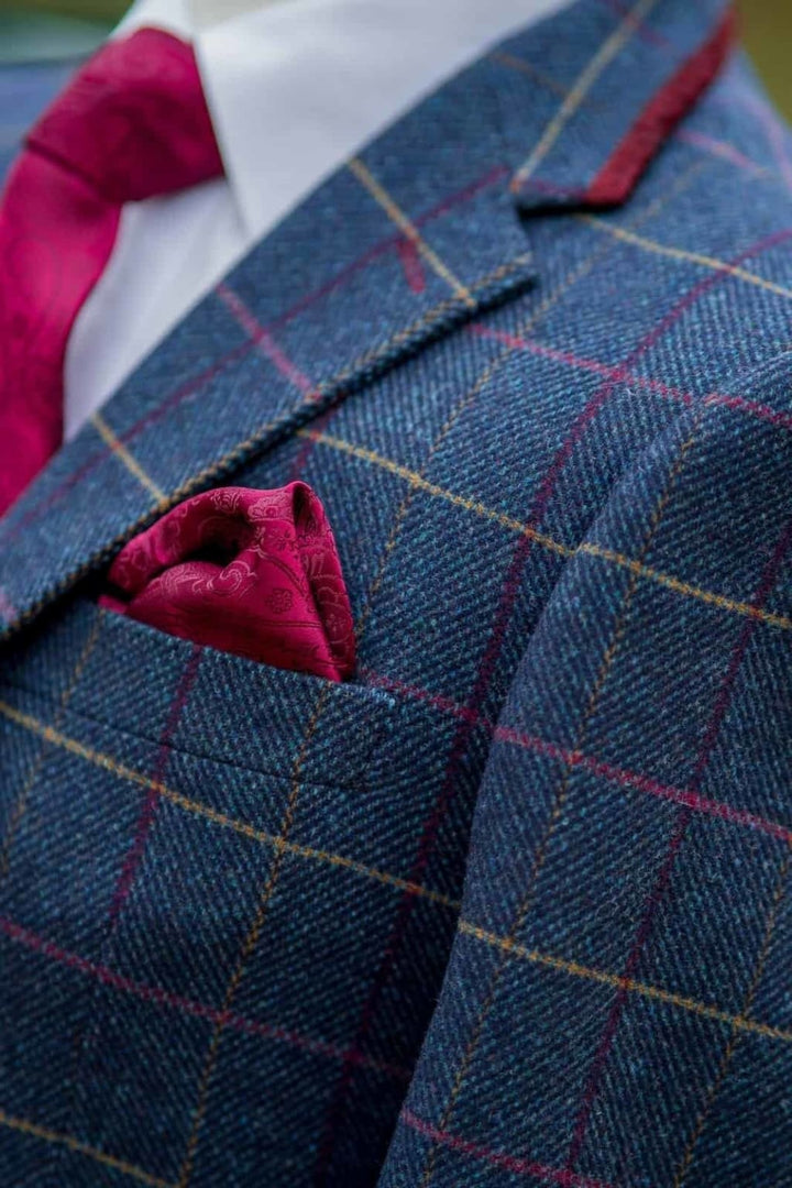 Découvrez le nouveau costume en tweed Doyle Blue Overcheck. Avec des accents bordeaux profondément intégrés dans le style, il fait la paix avec des pièces décontractées ou formelles à tout moment et en toute occasion.