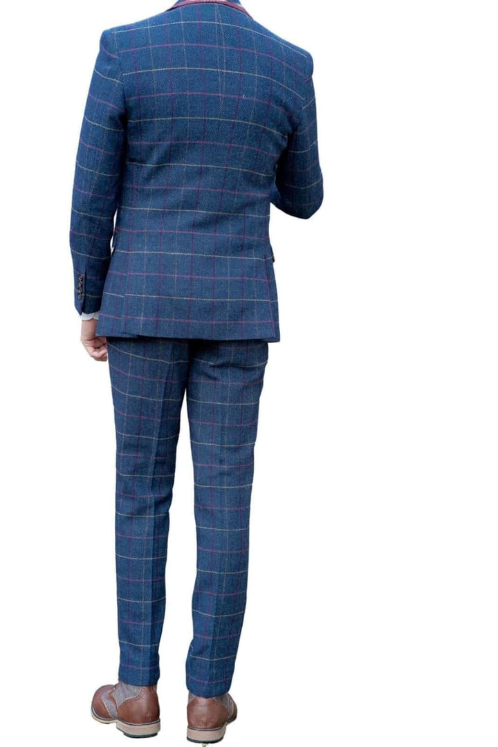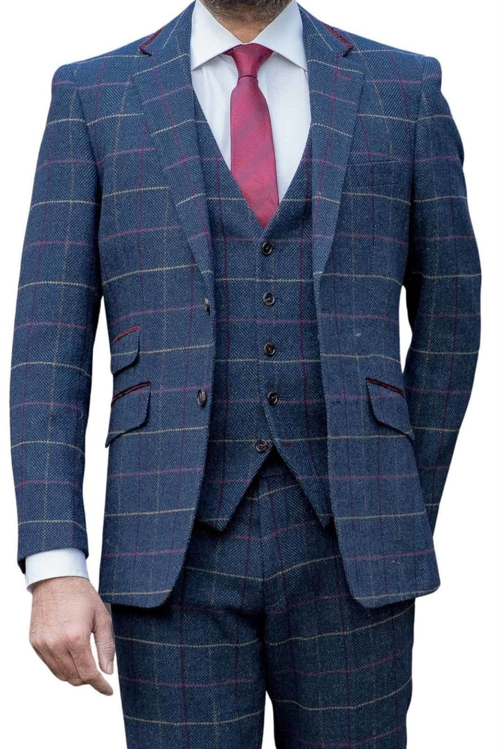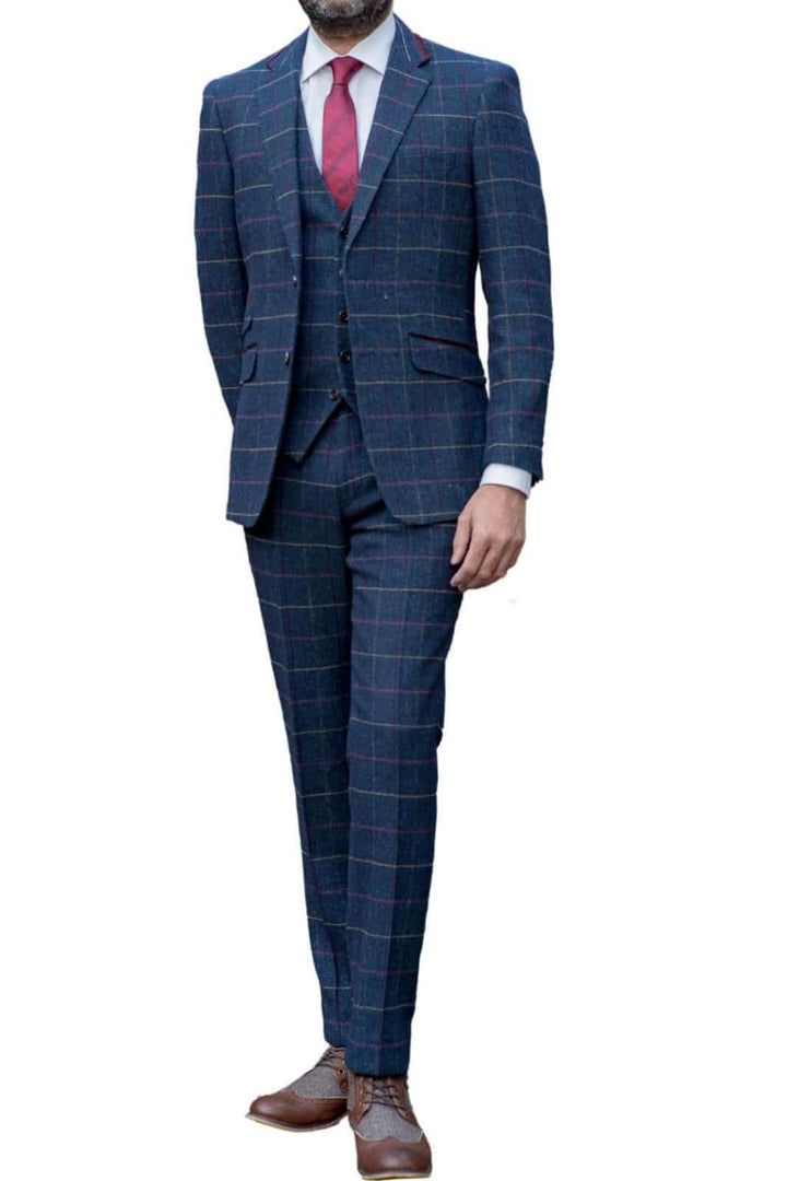 Skopes Doyle Navy Check Tweed Wool Blend 3 Piece Suit   Looking for a fresh and suave look for your big day? Look no further than the New Doyle Blue Overcheck...