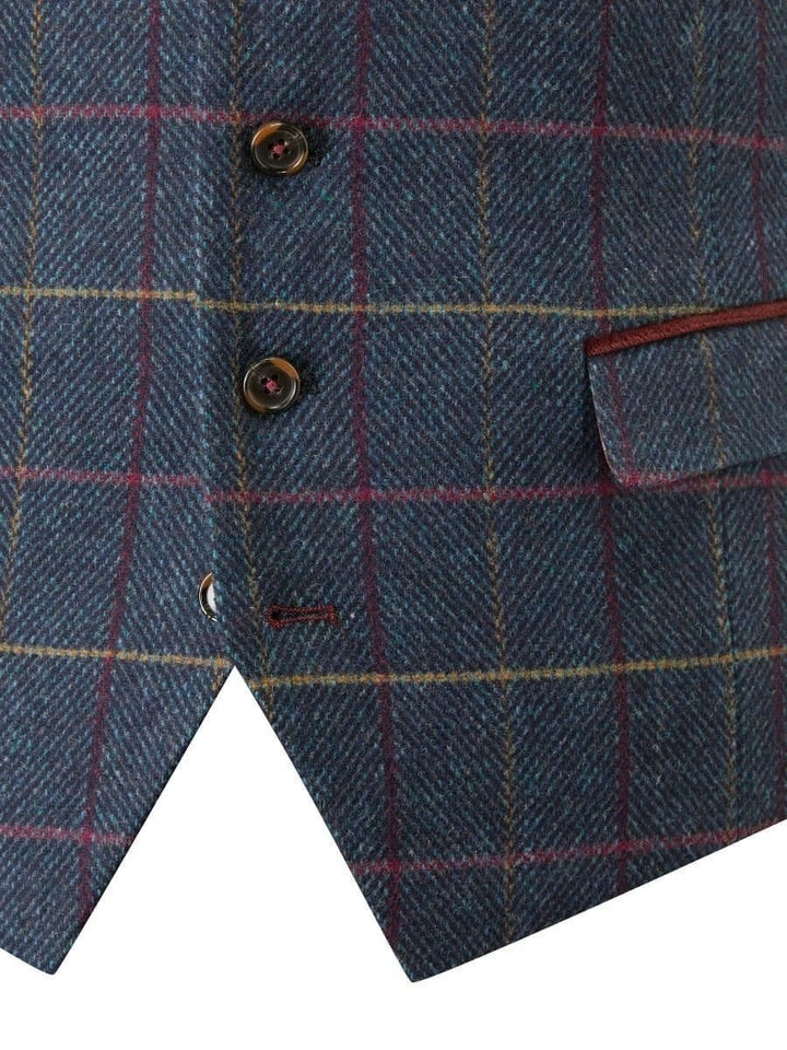 Skopes Doyle Navy Herringbone Check Tweed Suit Waistcoat - 36S - Suit & Tailoring Skopes Doyle Navy Herringbone Check Tweed Suit Waistcoat
