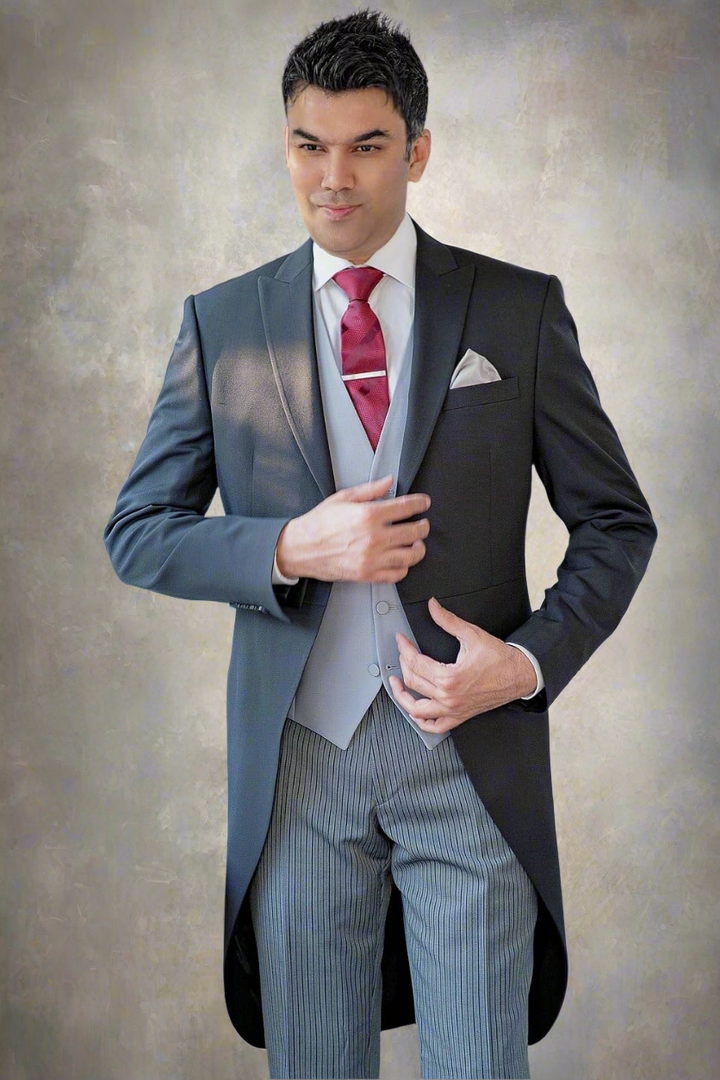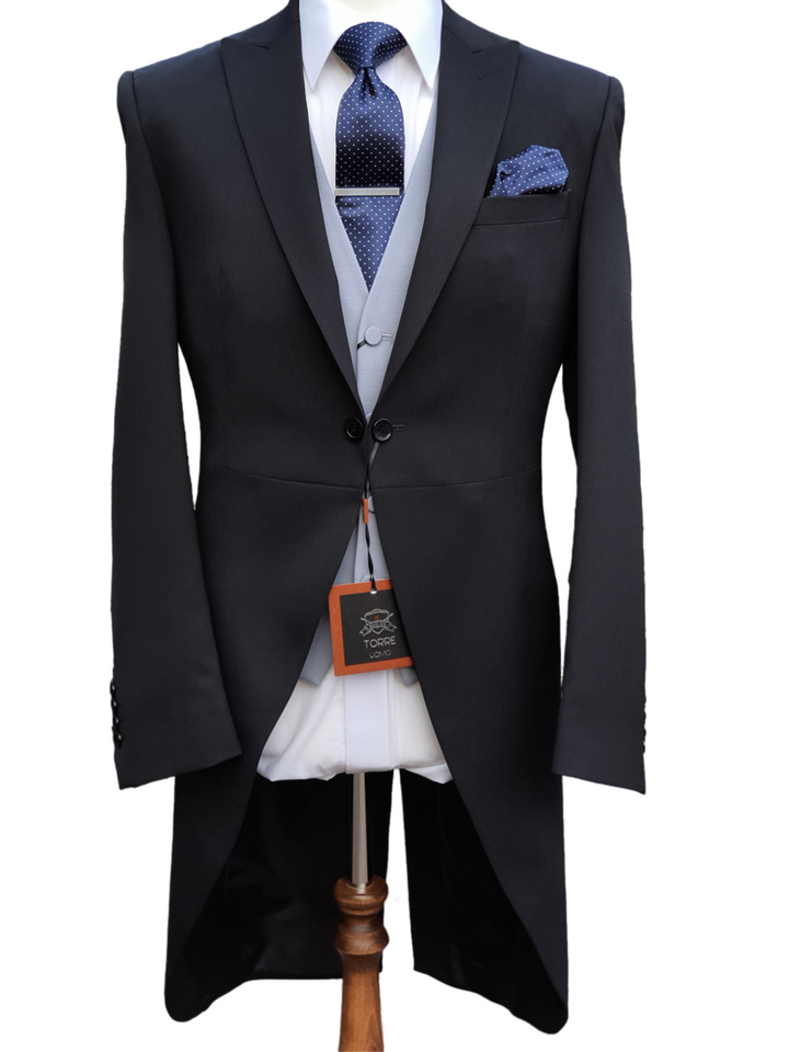 Torre Black Slim Fit Three Piece Morning Suit - Suit & Tailoring