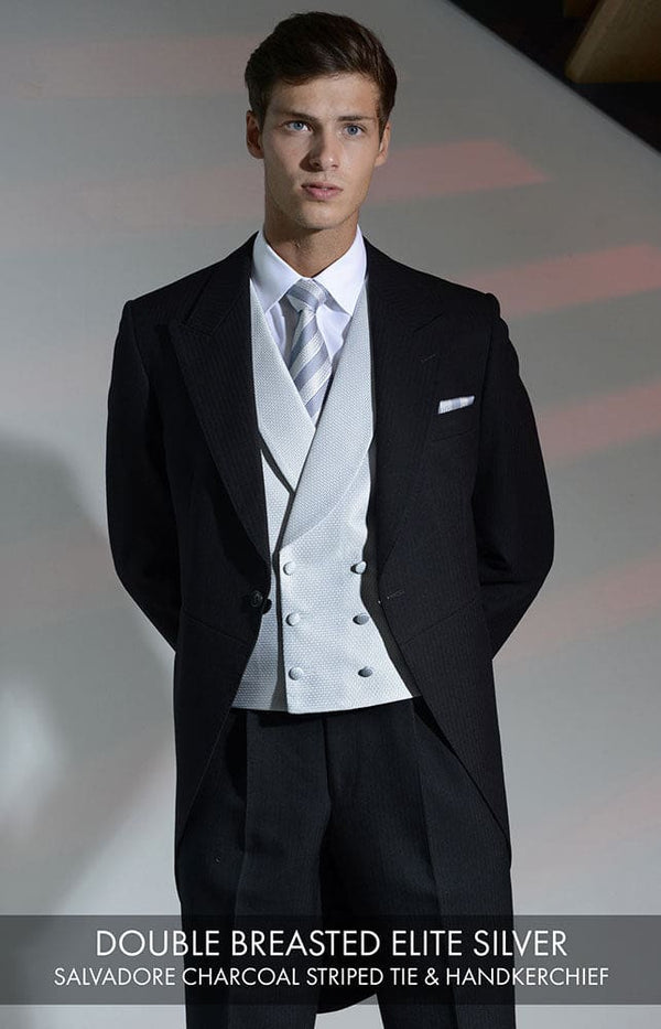 Heirloom Elite Men’s Silver Double Breasted Luxury Waistcoat - 34R - WAISTCOATS