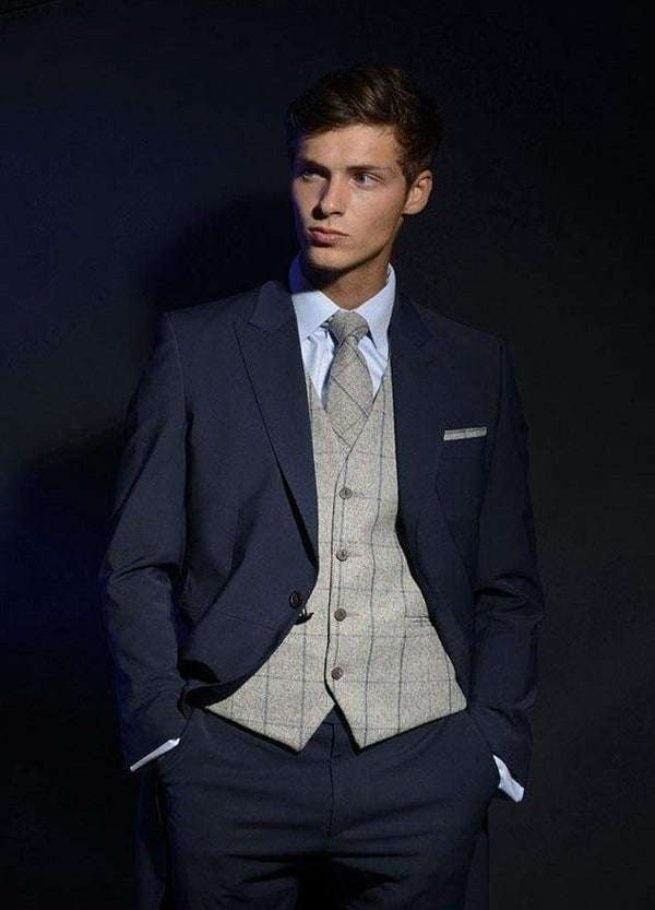 Heirloom Silver Blue Luxury 100% Wool Tweed Waistcoat   Enhance the elegance of your Blue suit with a Grey Tweed Waistcoat. The Silver Blue Luxury Tweed Waistcoat by Heirloom Waistcoats...