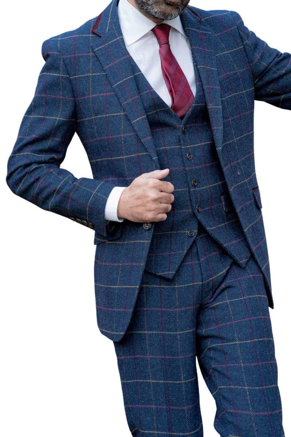 Marc Darcy Eton Men's Blue Slim Fit Tweed Check Blazer