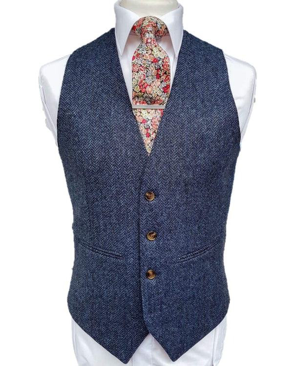 Torre Devon Blue 100% British Wool Herringbone Men's Tweed Waistcoat