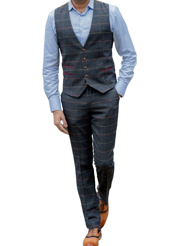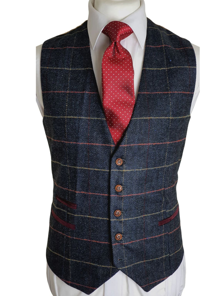 Barucci Leo Men's Navy Slim Fit Tweed Waistcoat