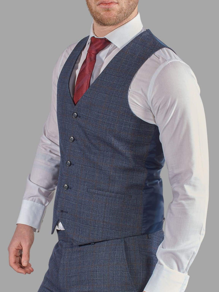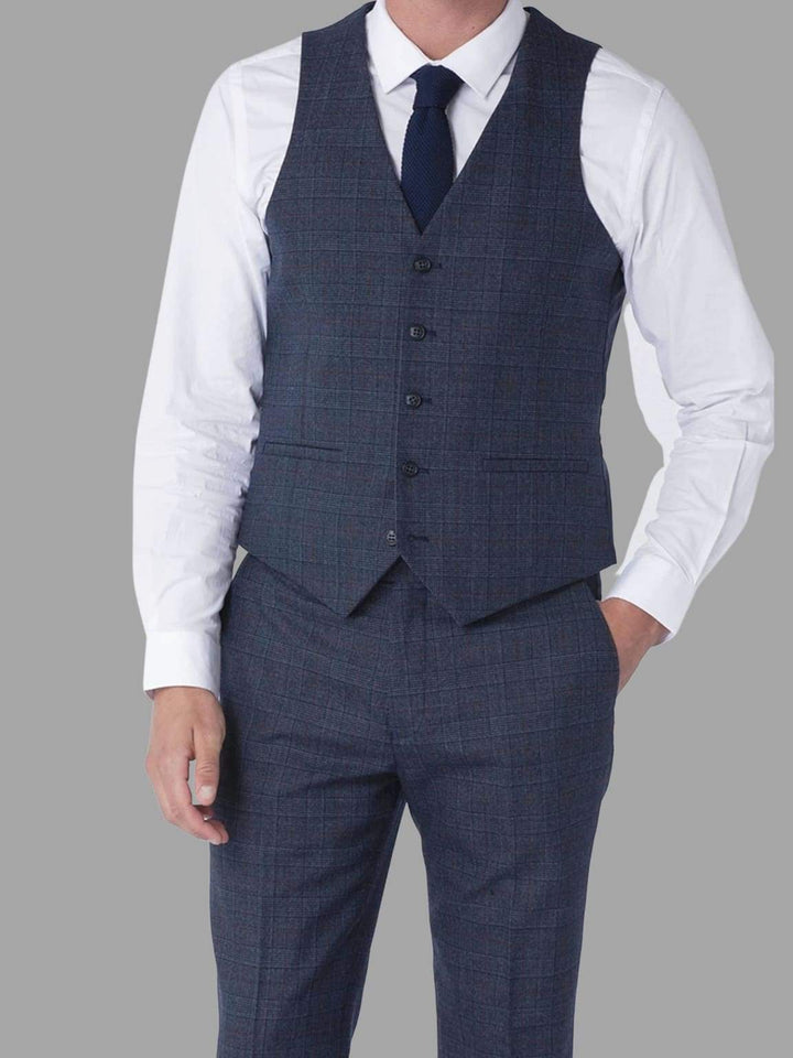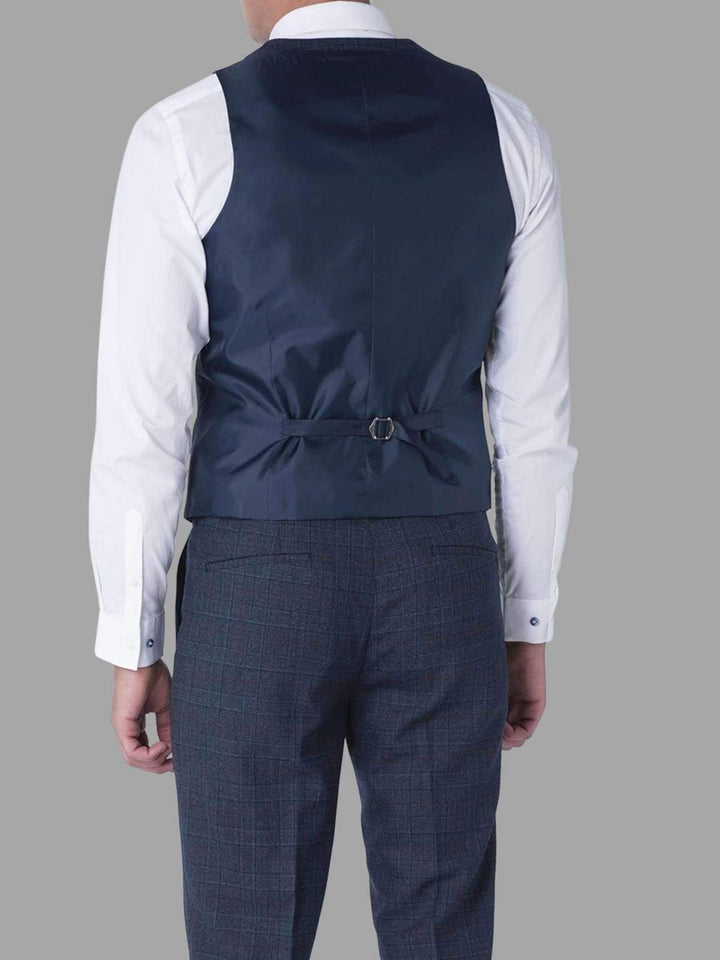 Harry Brown Finley Check Navy Waistcoat - MENSWEARR.COM - 36R - Men’s Waistcoats Harry Brown Finley Check Navy Waistcoat