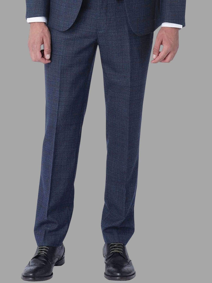 Harry Brown Finley Check Navy Trousers - MENSWEARR.COM - 28R - MEN’S SUIT TROUSERS Harry Brown Finley Check Navy Trousers