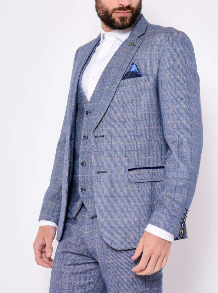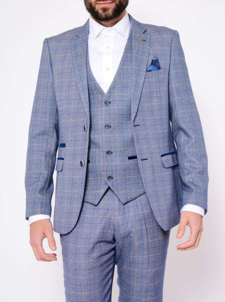 Marc Darcy Harry Light Blue Slim Fit Tweed Check Suit Blazer - Suit & Tailoring