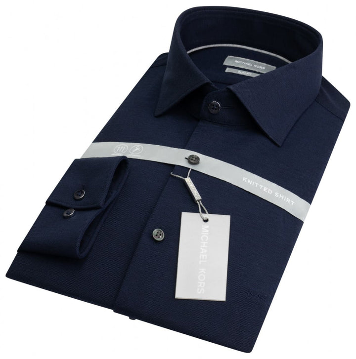 Michael Kors Men’s Parma Navy Solid Pique Premium Slim Fit Shirt - Shirts