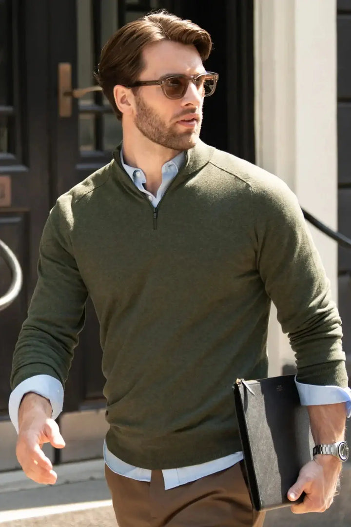 Nimbus Brighton ¼ Zip Knitted Jumper - Olive / XS - Knitwear