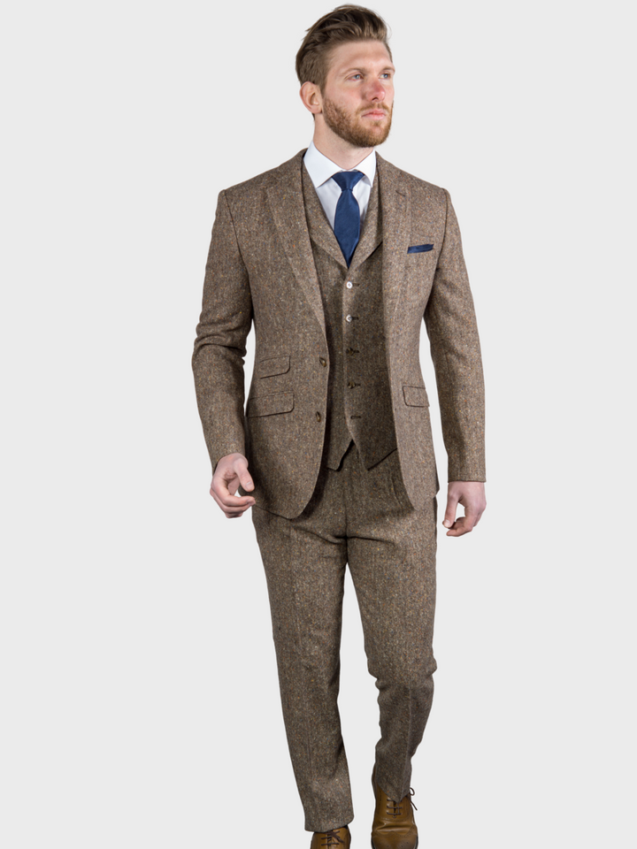 Torre Elton Tweed Men’s Brown Donegal Tweed Trousers - MENSWEARR.COM - MEN’S SUIT TROUSERS