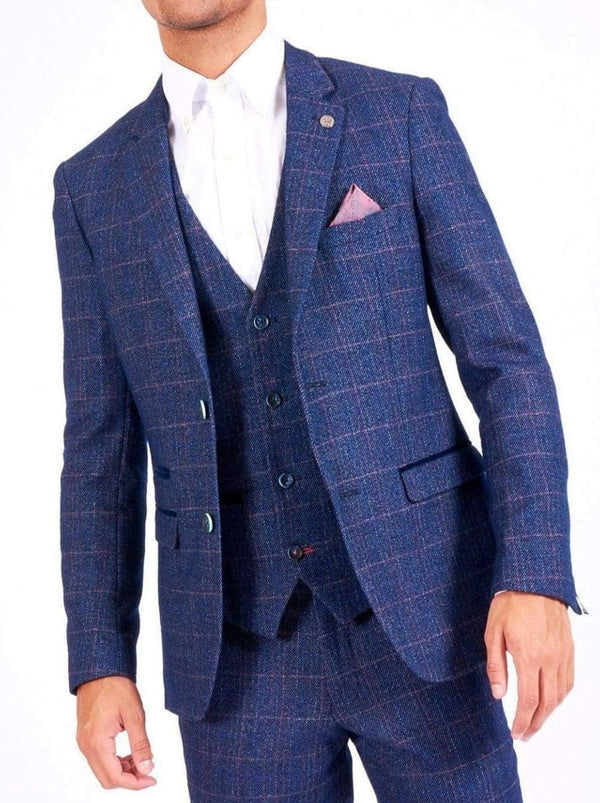 Marc Darcy Harry Men's Indigo Blue Tweed Check Suit