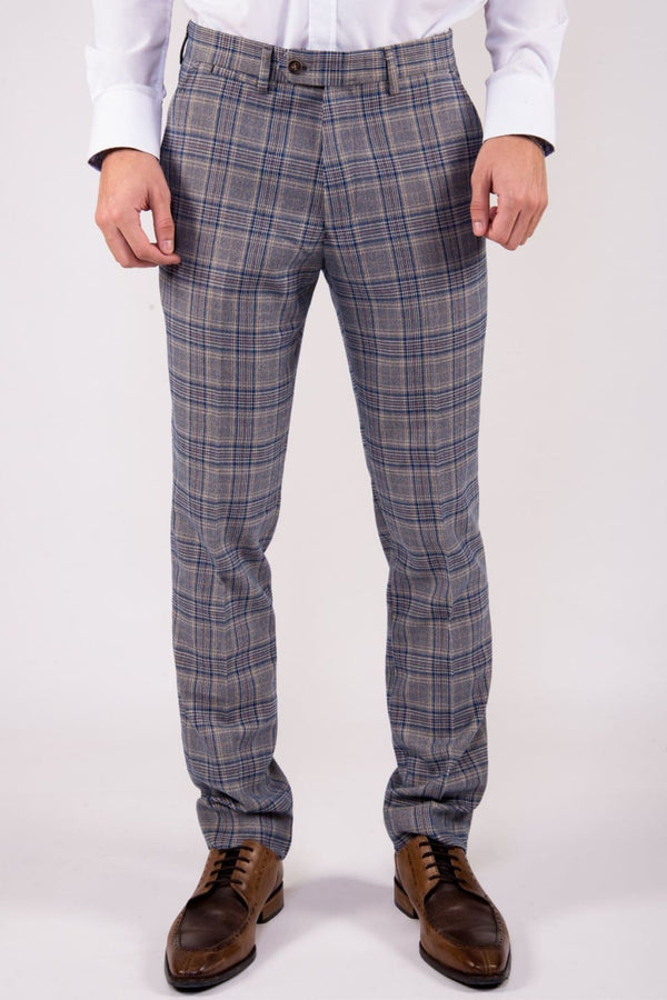 Cavani Orson Men’s Blue Tweed Trousers - MENSWEARR.COM - 28R - MEN’S SUIT TROUSERS