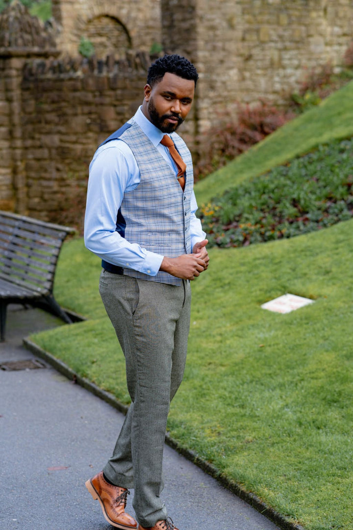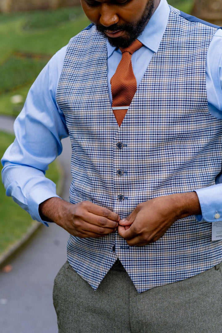 Skopes Jude Sage Green Herringbone Tweed Waistcoat - MENSWEARR.COM - 34R - Men’s Waistcoats Skopes Jude Sage Green Herringbone Tweed Waistcoat