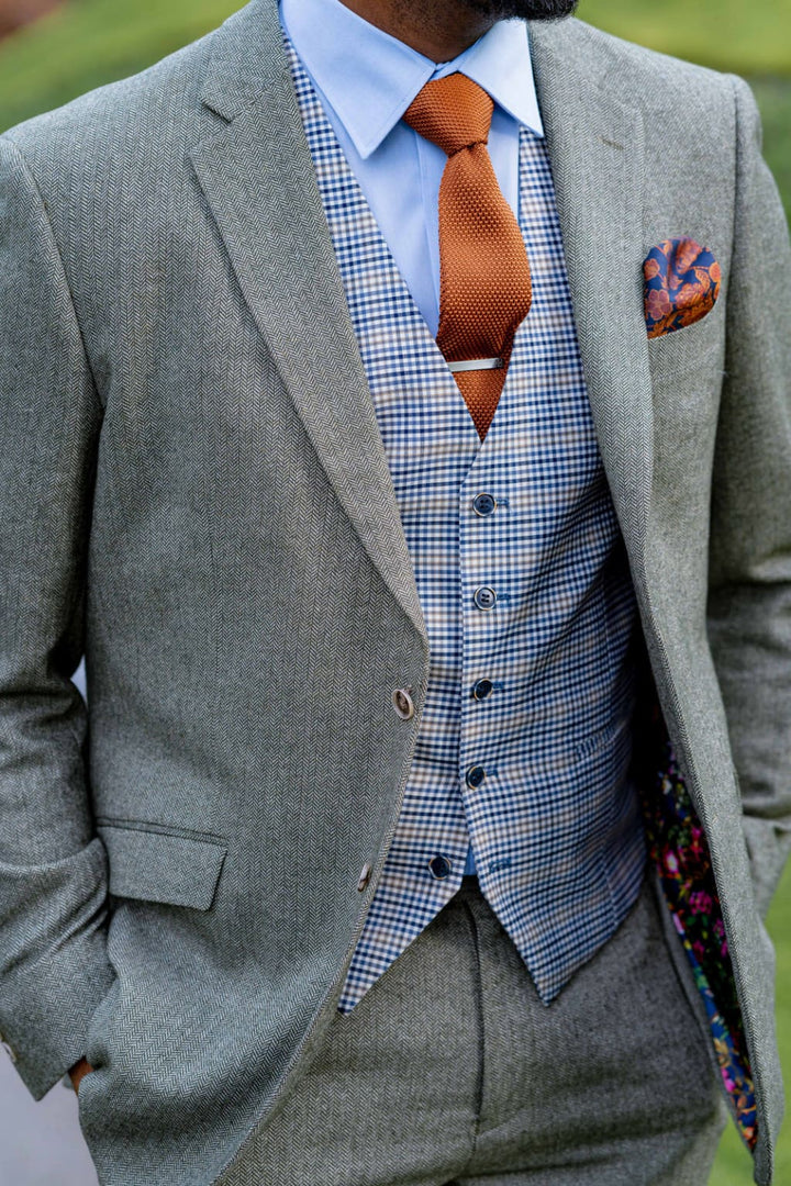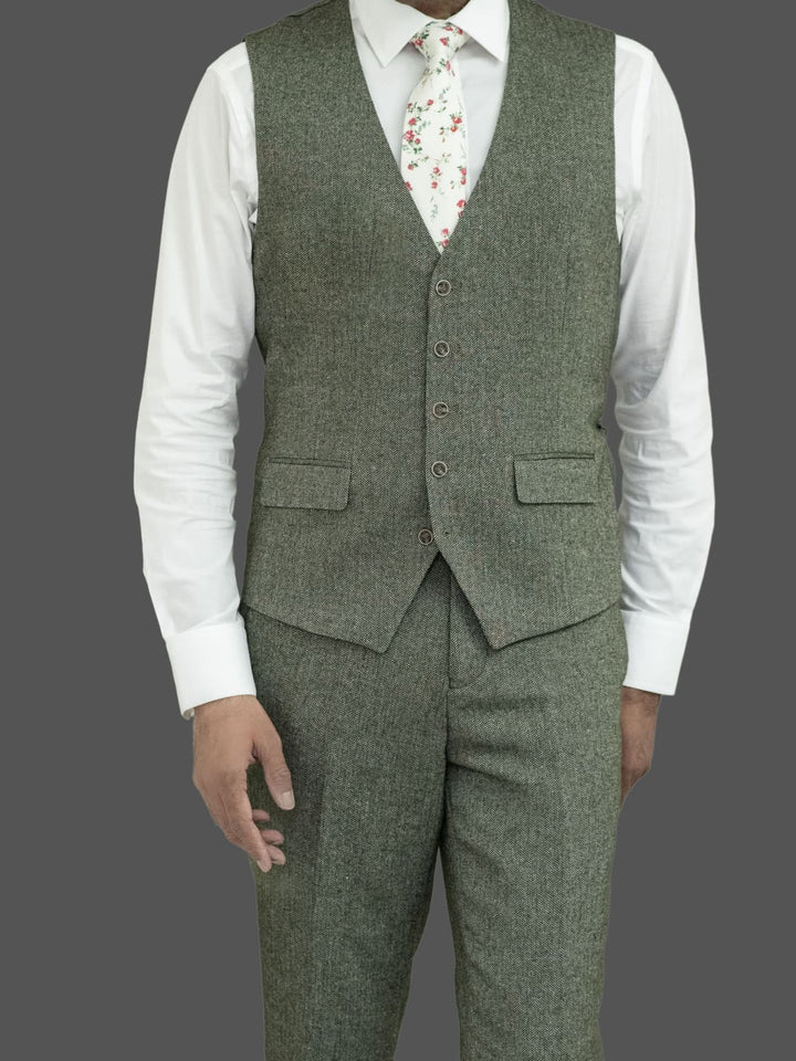 Skopes Jude Sage Green Herringbone Tweed 3 Piece Suit - Suits