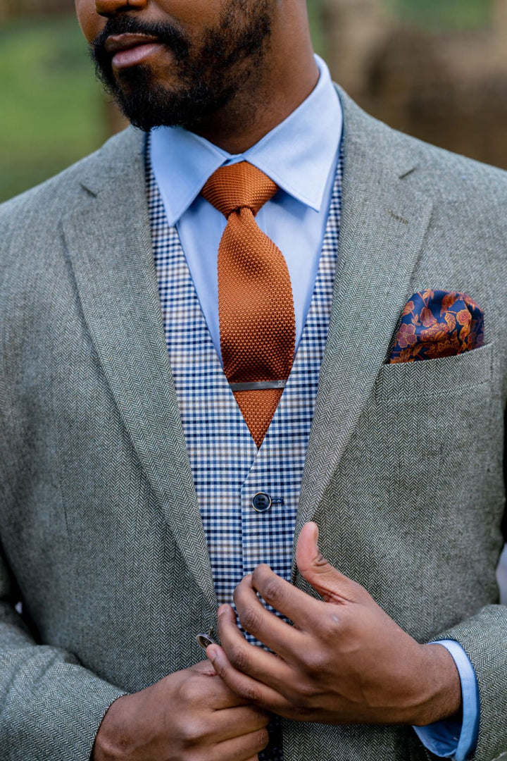 Check out the New Skopes Jude Sage Green Herringbone Tweed 3 Piece Suit. With cool sage green accents deeply incorporated into styling, it makes peace with both casual or formal pieces at any time and at any occasion.