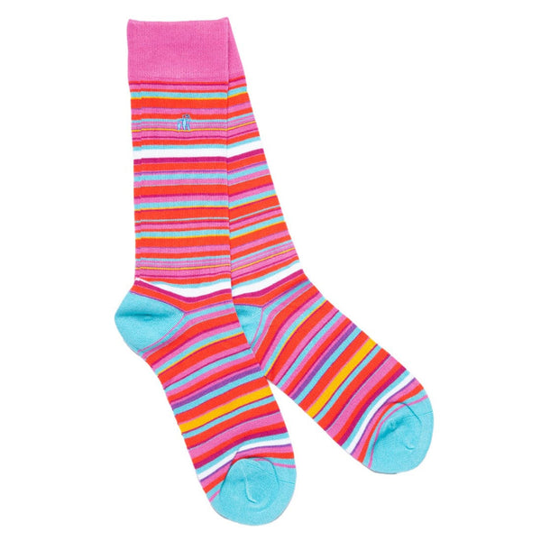 Blue and Red Narrow Striped Bamboo Socks - UK 7-11 (US 8-12 / EU 40-47) - Socks