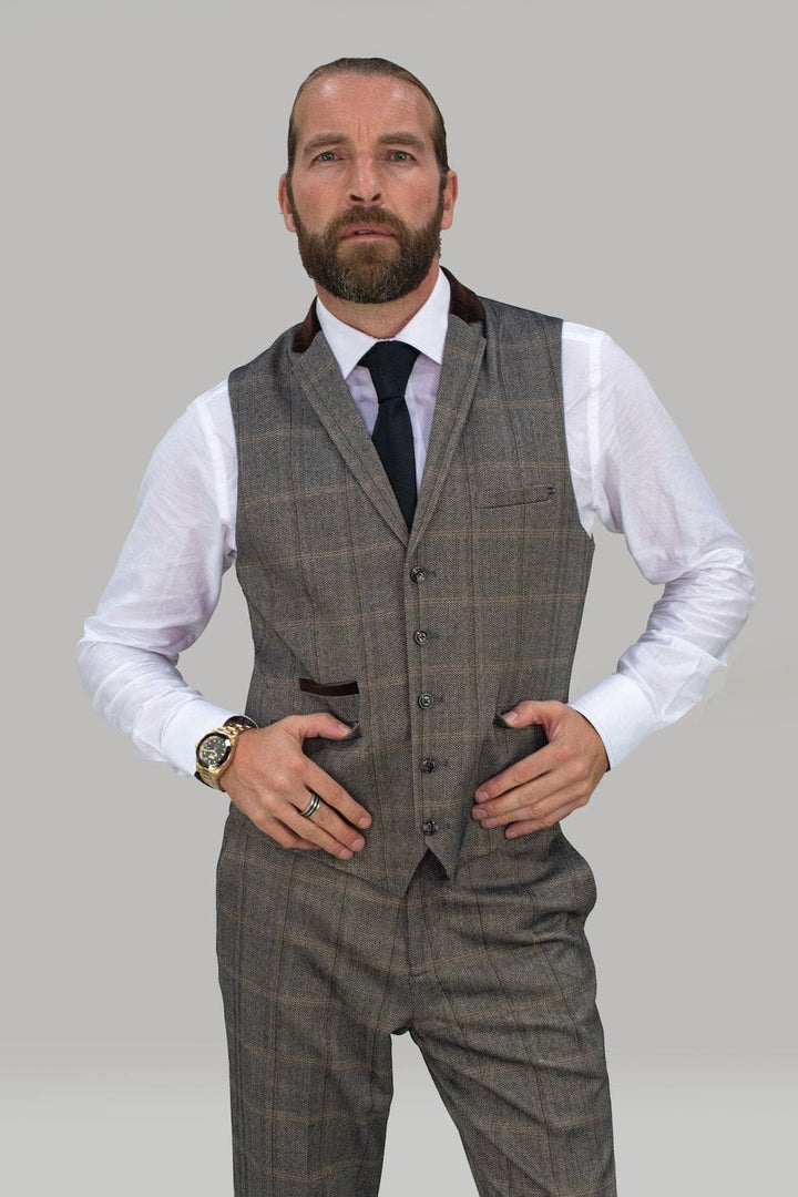 Cavani Connall Brown Tweed Check Style Waistcoat