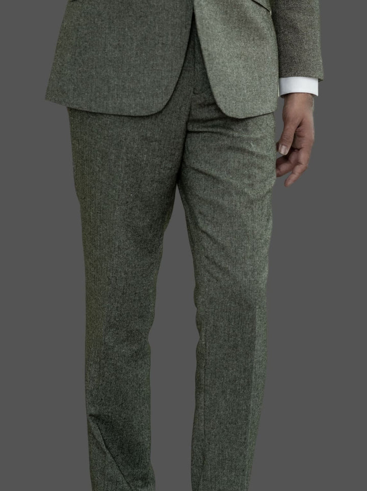 Skopes Jude Sage Green Herringbone Tweed Tappered Trousers
